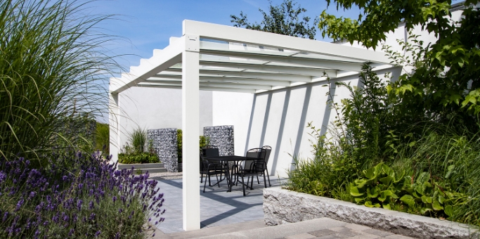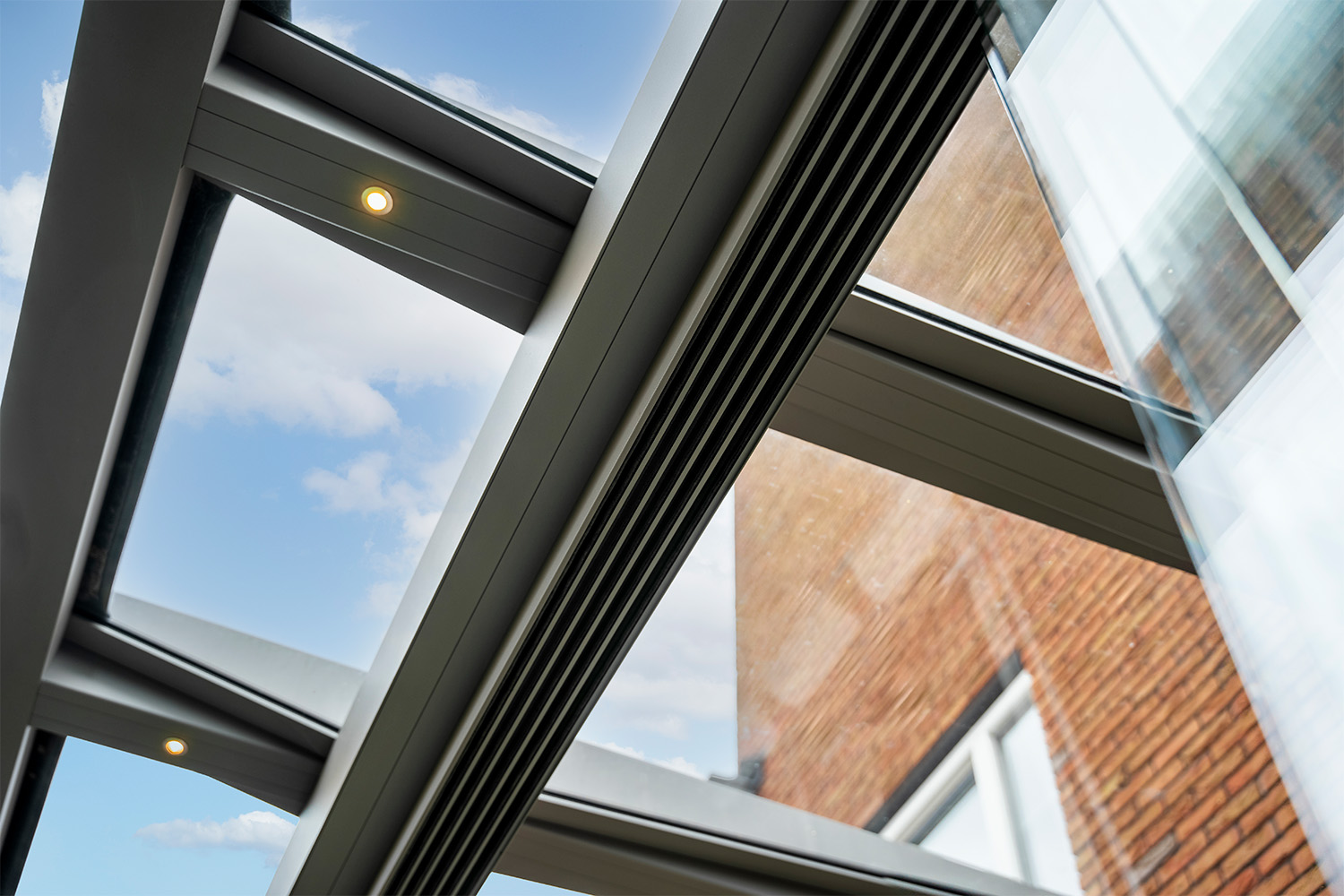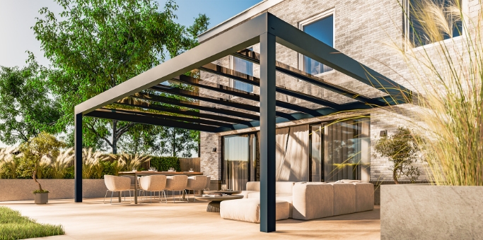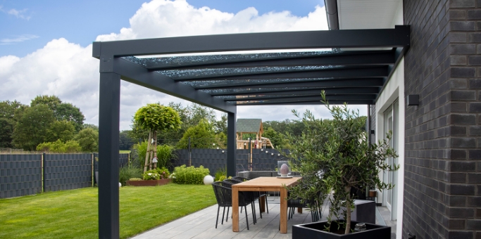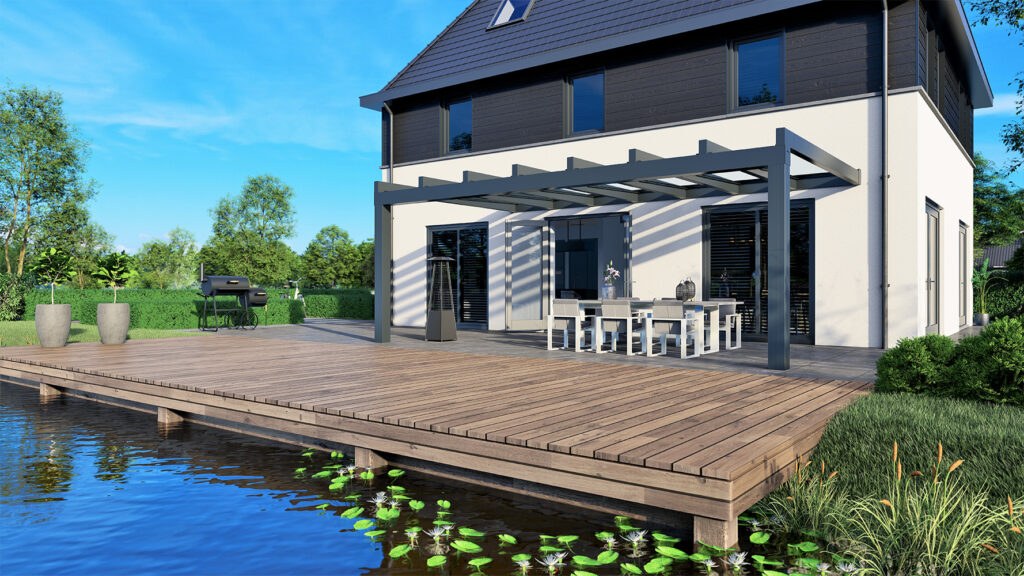 Mit Ultraline bekommst du eine Premium-Überdachung aus pulverbeschichtetem Aluminium, die in Design und Technik überzeugt. Das System ist auf große Spannbreiten ausgelegt – für maximale Offenheit und eine ungehinderte Panorama-Aussicht. Dank der durchdachten Konstruktion fügen sich Rinne, Pfosten und Sparren zu einer klaren, kubischen Silhouette zusammen.