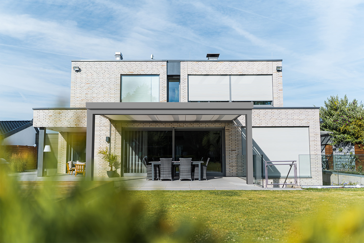 Optional erweiterst du dein Terrassendach mit Glasschiebetüren, Markisen und LED-Licht – für maximalen Komfort bei jedem Wetter.
